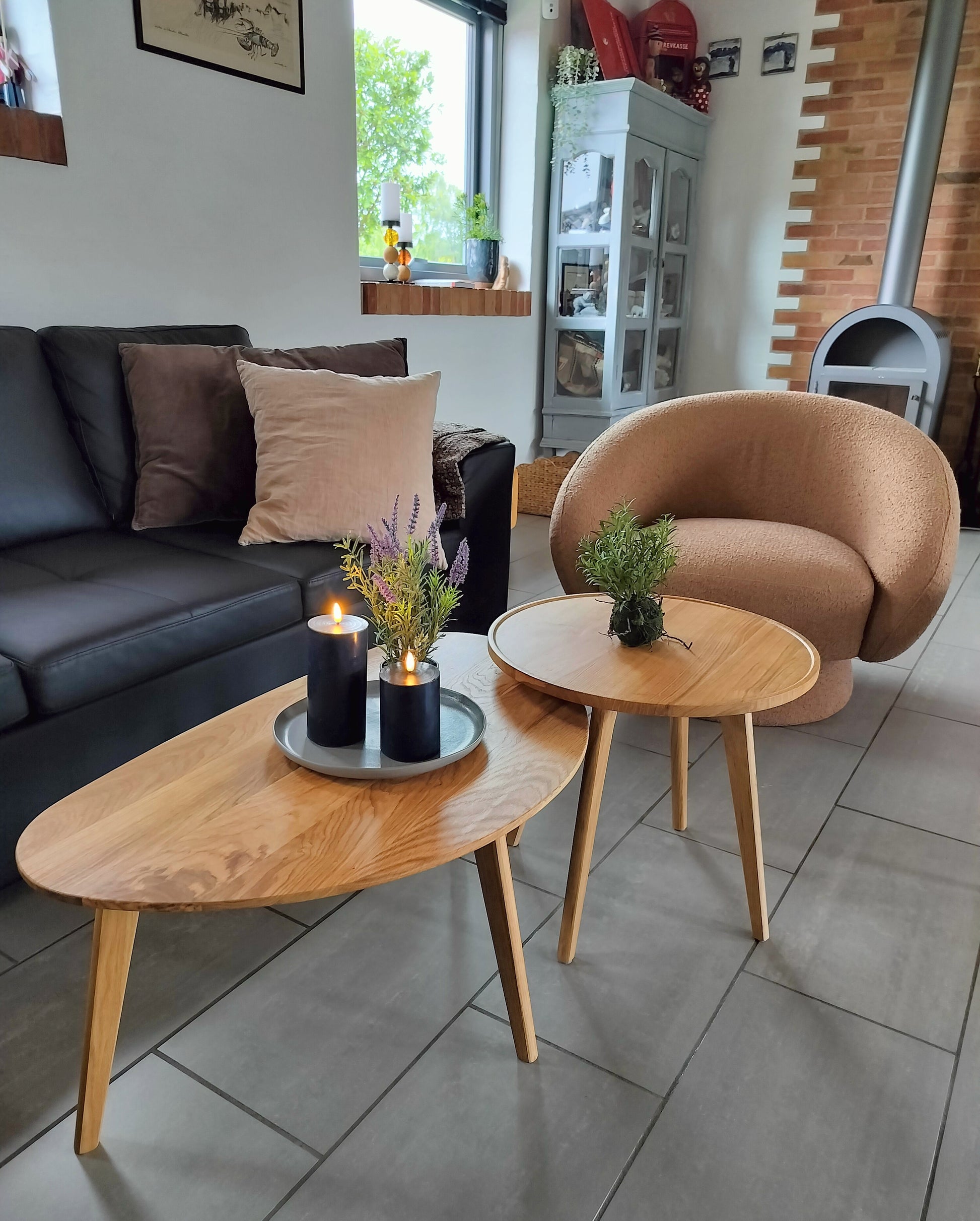 Dette smukke bord er utroligt alsidigt og kan bruges som et charmerende lille sofabord. Det er det ideelle sted at placere din kop te eller din yndlingsbog, så du altid har det inden for rækkevidde. Uanset om det bruges som et funktionelt møbel eller som et dekorativt element, vil dette lækre egetræsbord tilføje en aura af raffinement og klasse til ethvert indretningsstil.