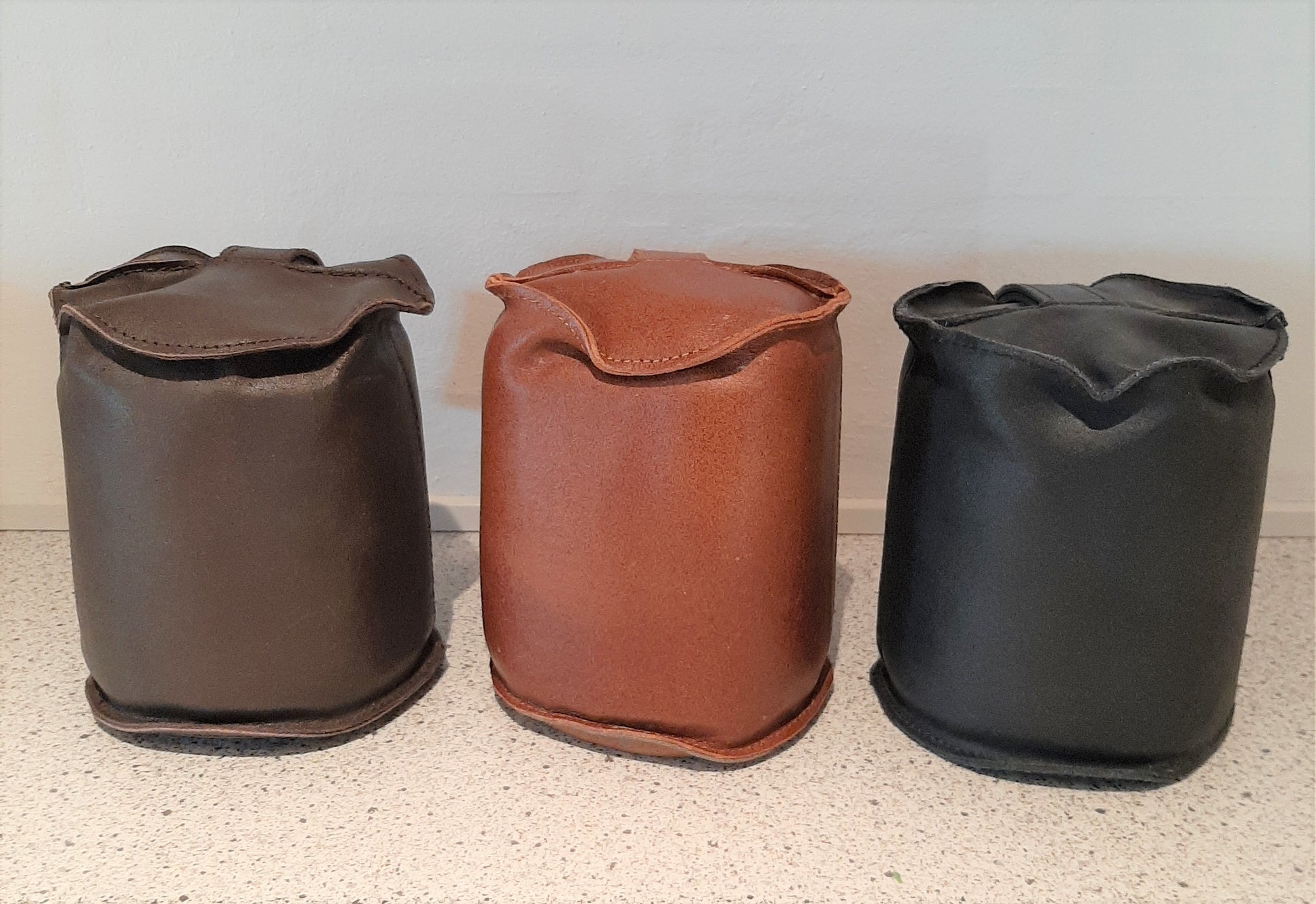 Denne dørstopper er lavet af bøffellæder og måler Ø13xH17cm og vejer 3 kg.