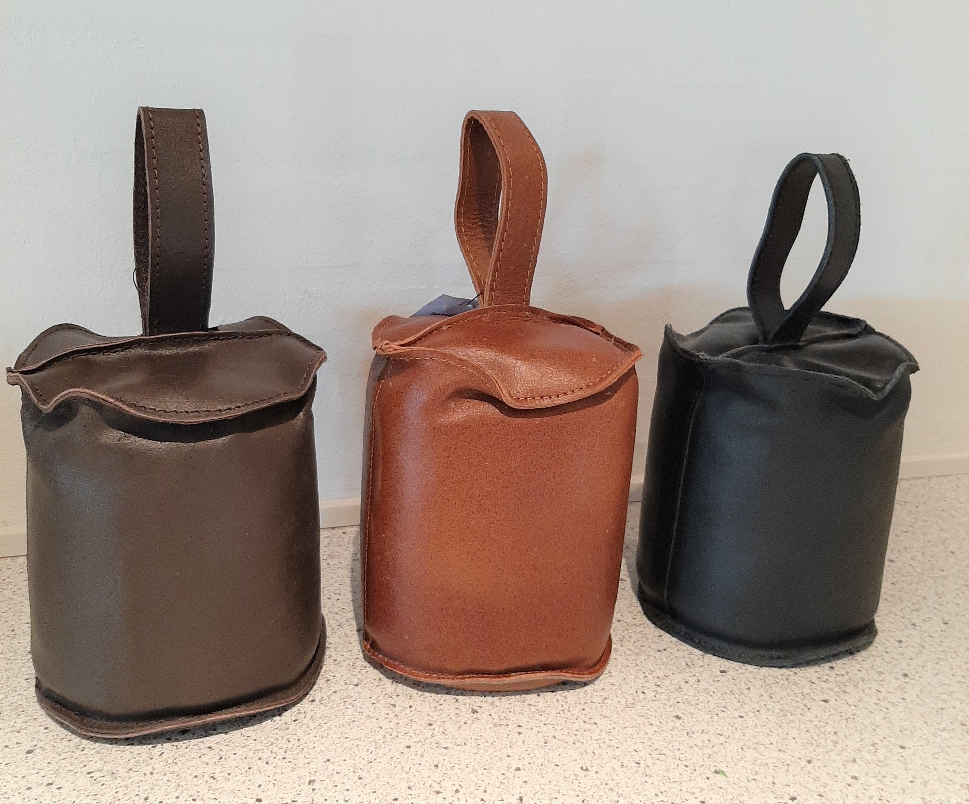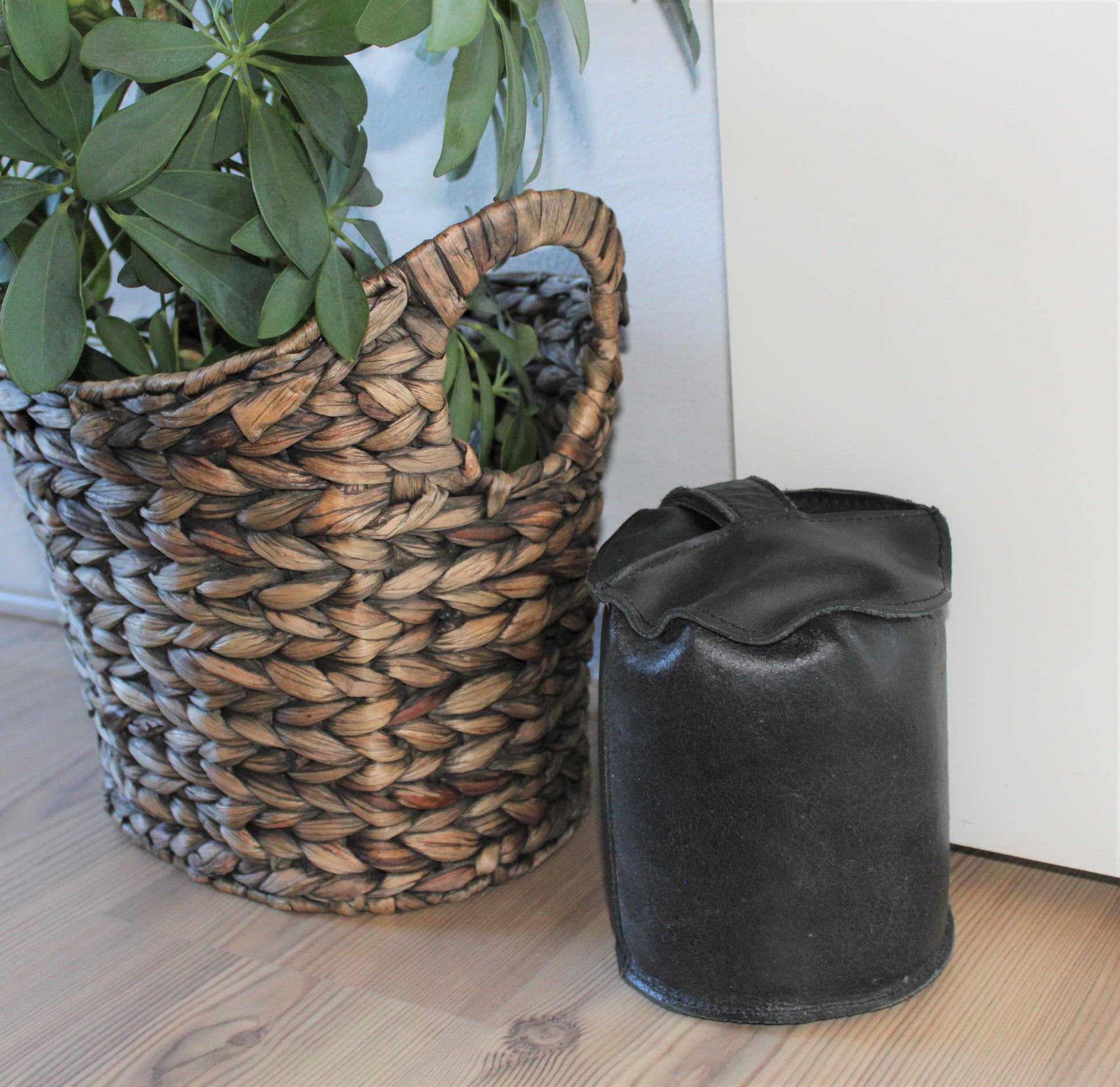 Denne dørstopper er lavet af bøffellæder og måler Ø13xH17cm og vejer 3 kg.