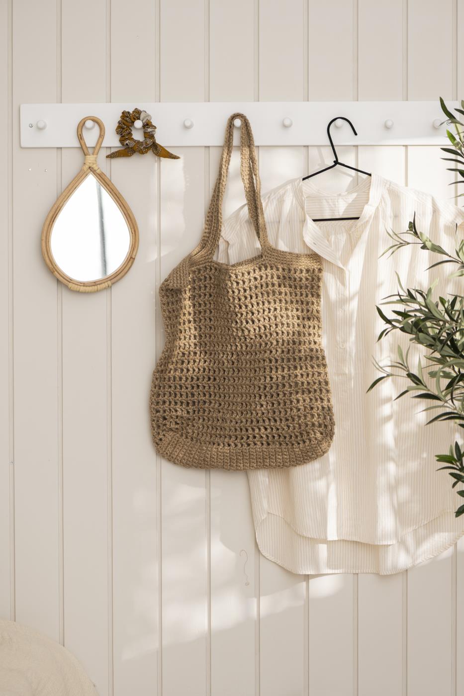 Det lille håndspejl er designet til at være praktisk og stilfuldt på samme tid. Dets kompakte størrelse gør det ideelt til at hænge på væggen i selv de mindste rum, samtidig med at den smukke bambuskant tilføjer et strejf af naturlig elegance.