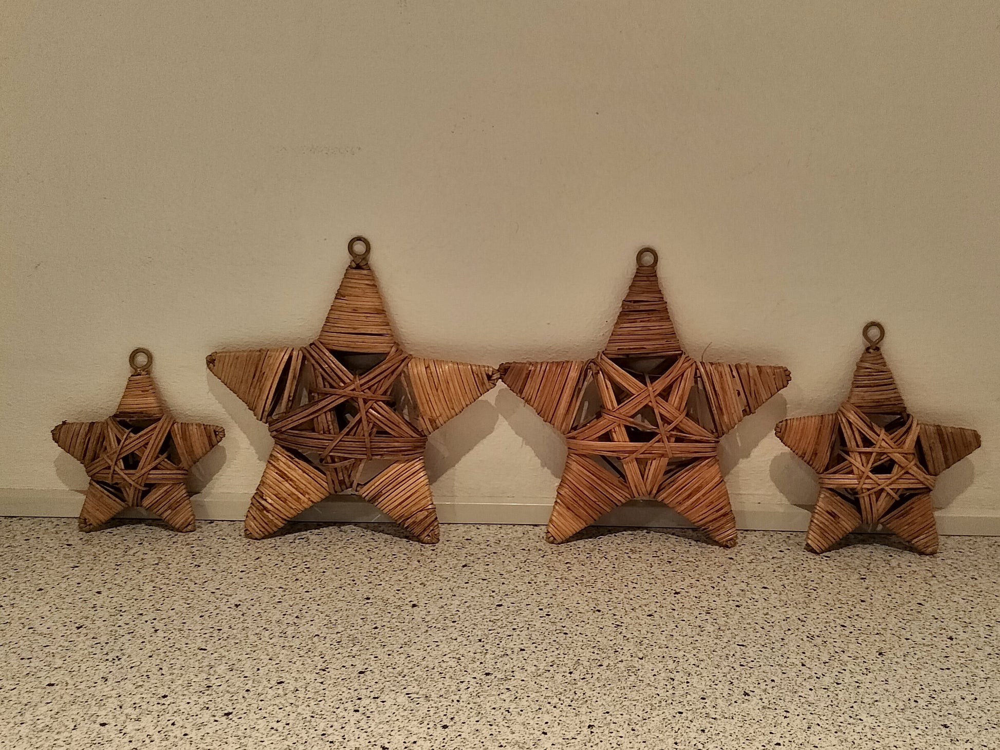Skab en hyggelig og naturlig julestemning med disse 4 smukke Cane stjerner fra Ib Laursens Stillenat serie. Der er 2 store (B 19 x H 20 cm), 1 mellem (B 14 x H 15 cm,) og 1 lille (B 8 x H 10 cm) stjerne. Stjernerne er oplagte til ophæng i vinduet, på juletræet eller som del af en dekorativ gren.