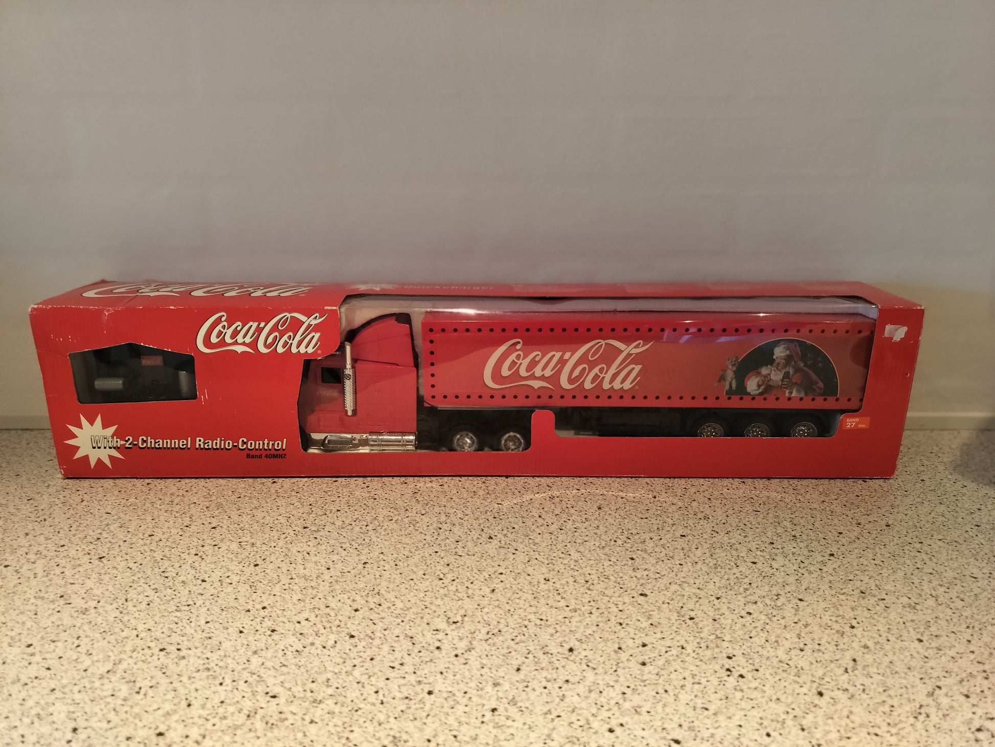 En ældre model af den berømte Coca Cola lastbil. Denne er fjernstyret og der kan tændes for lys langs siden af lastbilen. Den har været pakket ud få gange for at afprøve kørsel af den ellers har den altid stået i papkassen.